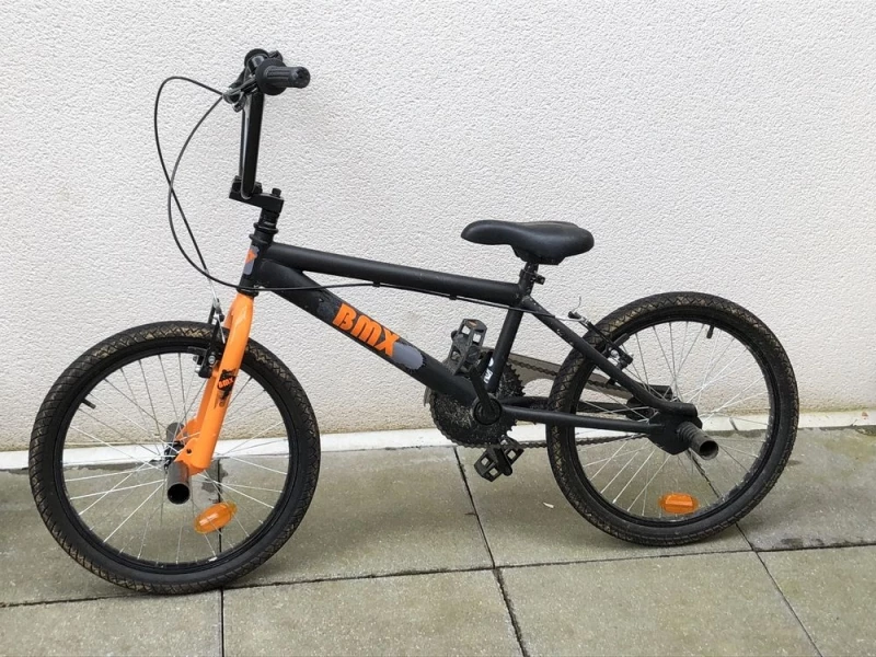Je vends un BMX enfant Orange et noir en trs bon tat et trs peu utilis (Offert l’aniversaire de mon fils il prfre son premier VTT)