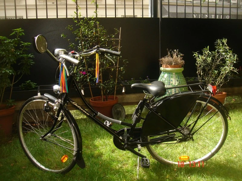 Servi 5 fois, selle antichocs cuir, antivol en U, 2 paniers mtal noirs avant/arrire.