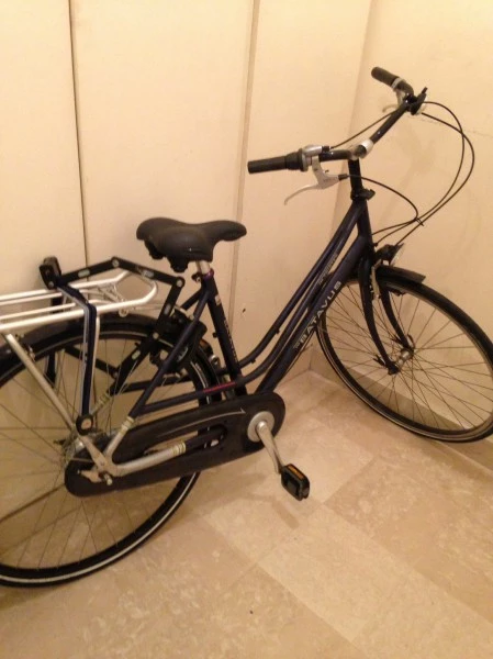 Vlo femme bleu marine Chrome acier mat anti vol ref baltus trs bon confort et trs elegant en ville servi 4 dimanche dur les berges de Seine Paris